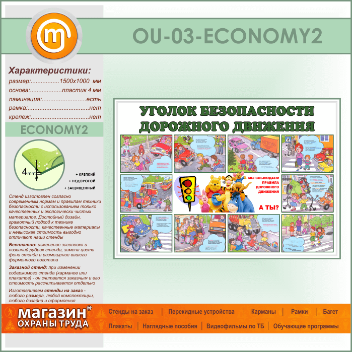 Стенд «Уголок безопасности дорожного движения» (OU-03-ECONOMY2) в Краснодаре купить