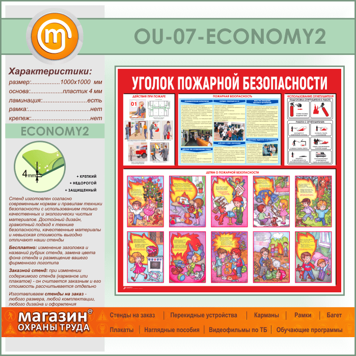 Стенд «Уголок пожарной безопасности» (OU-07-ECONOMY2) в Краснодаре купить