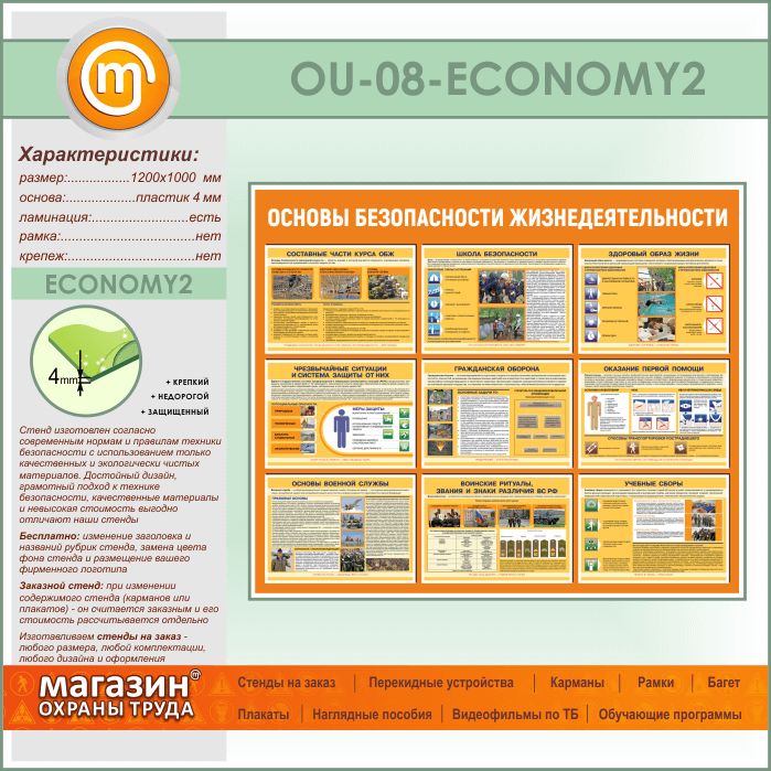 Стенд «Основы безопасности жизнедеятельности» (OU-08-ECONOMY2) в Краснодаре купить