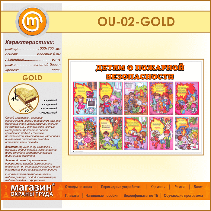 Стенд «Детям о пожарной безопасности» (OU-02-GOLD) в Краснодаре купить