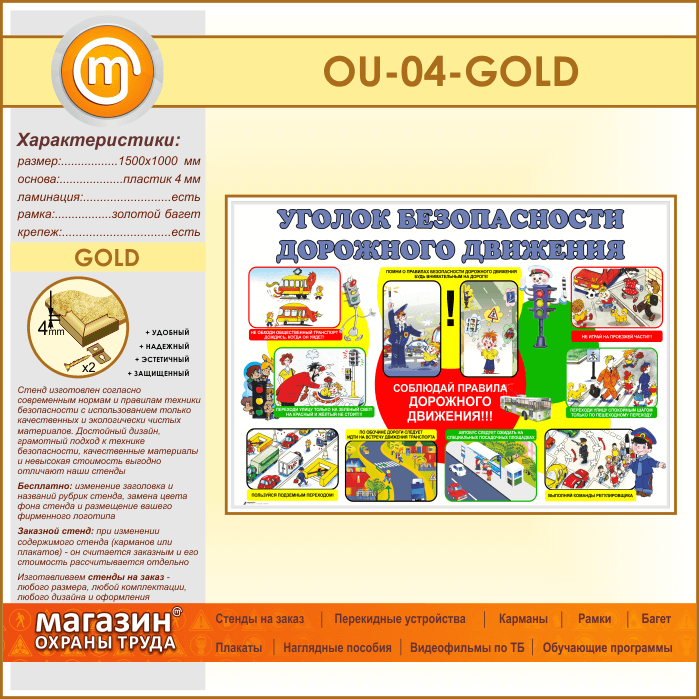 Стенд «Уголок безопасности дорожного движения» (OU-04-GOLD) в Краснодаре купить