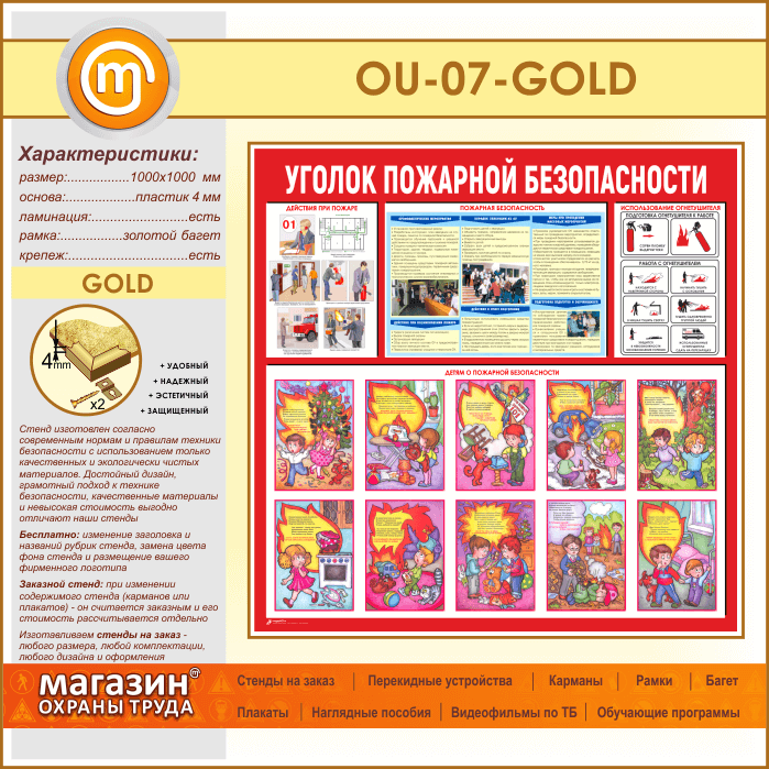 Стенд «Уголок пожарной безопасности» (OU-07-GOLD) в Краснодаре купить