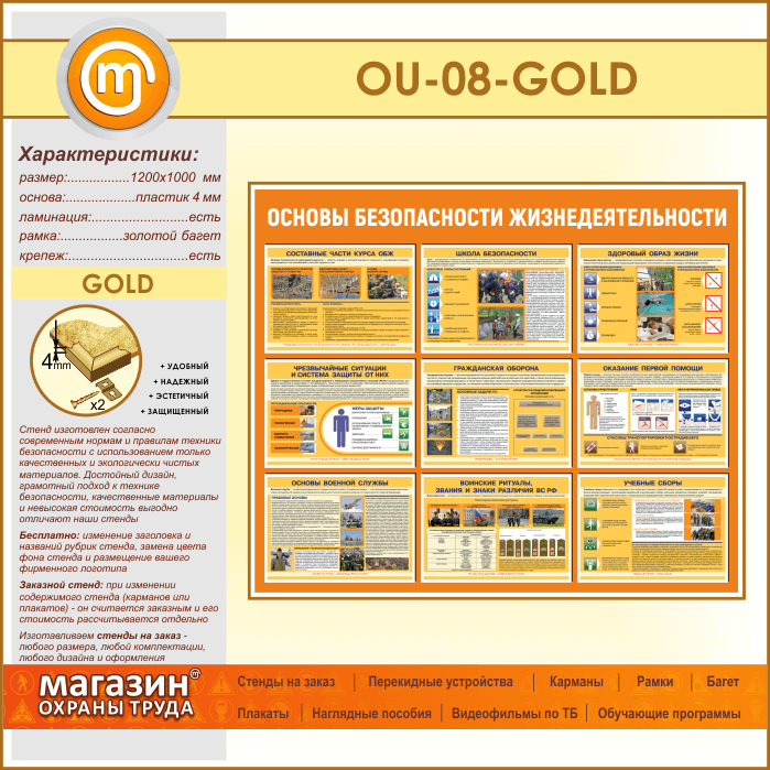 Стенд «Основы безопасности жизнедеятельности» (OU-08-GOLD) в Краснодаре купить