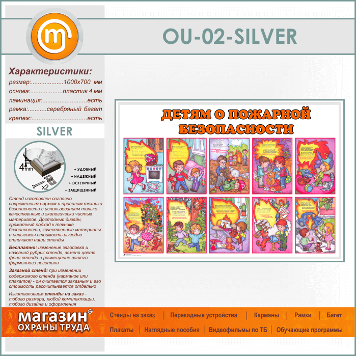 Стенд «Детям о пожарной безопасности» (OU-02-SILVER) в Краснодаре купить