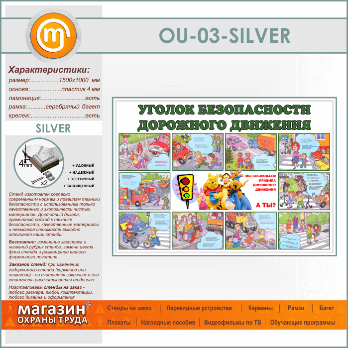Стенд «Уголок безопасности дорожного движения» (OU-03-SILVER) в Краснодаре купить