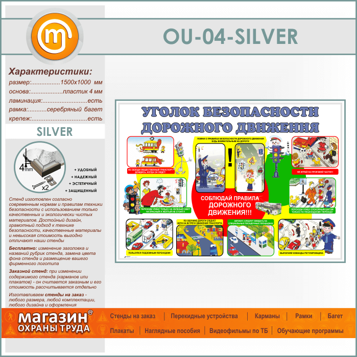 Стенд «Уголок безопасности дорожного движения» (OU-04-SILVER) в Краснодаре купить