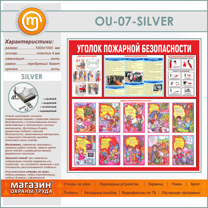 Стенд «Уголок пожарной безопасности» (OU-07-SILVER) в Краснодаре купить