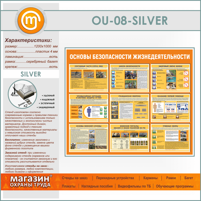 Стенд «Основы безопасности жизнедеятельности» (OU-08-SILVER) в Краснодаре купить