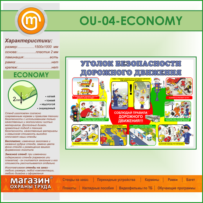 Стенд «Уголок безопасности дорожного движения» (OU-04-ECONOMY) в Краснодаре купить
