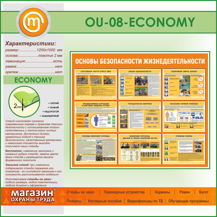 Стенд «Основы безопасности жизнедеятельности» (OU-08-ECONOMY) в Краснодаре купить