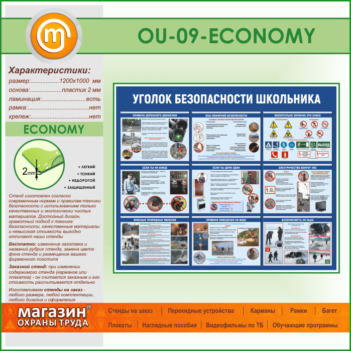 Стенд «Уголок безопасности школьника» (OU-09-ECONOMY) в Краснодаре купить