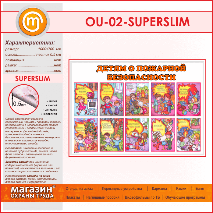Стенд «Детям о пожарной безопасности» (OU-02-SUPERSLIM) в Краснодаре купить