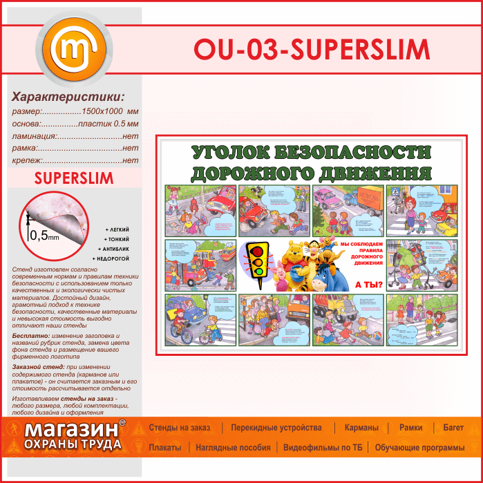 Стенд «Уголок безопасности дорожного движения» (OU-03-SUPERSLIM) в Краснодаре купить