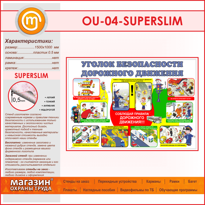 Стенд «Уголок безопасности дорожного движения» (OU-04-SUPERSLIM) в Краснодаре купить
