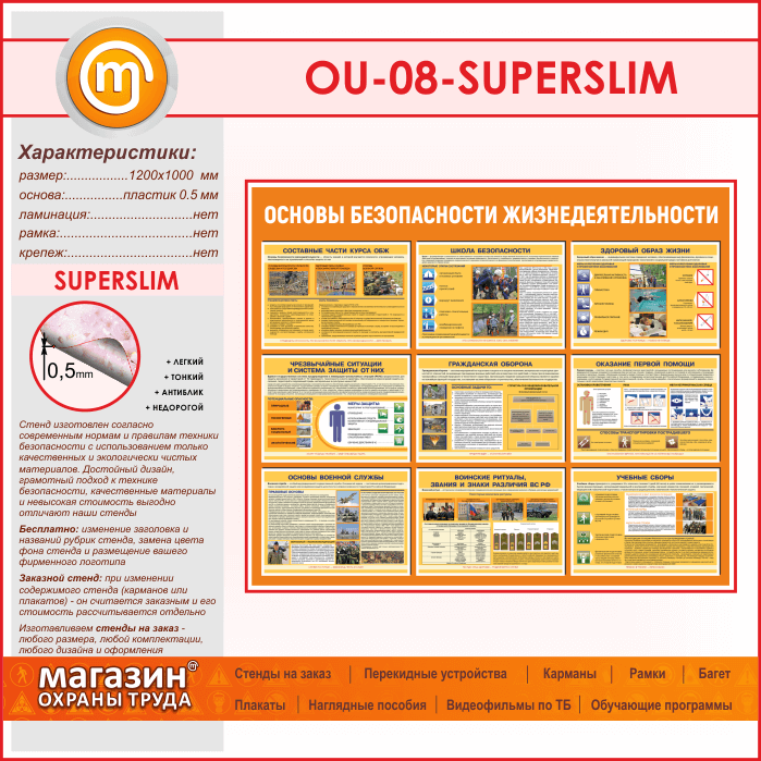 Стенд «Основы безопасности жизнедеятельности» (OU-08-SUPERSLIM) в Краснодаре купить