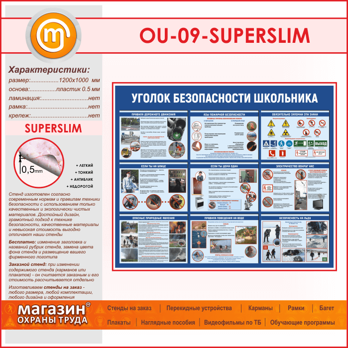 Стенд «Уголок безопасности школьника» (OU-09-SUPERSLIM) в Краснодаре купить