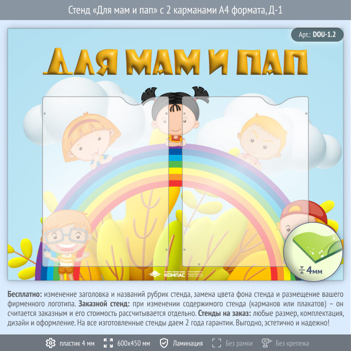 Стенд «Для мам и пап» с 2 карманами А4 формата (DOU-1.2) в Краснодаре купить