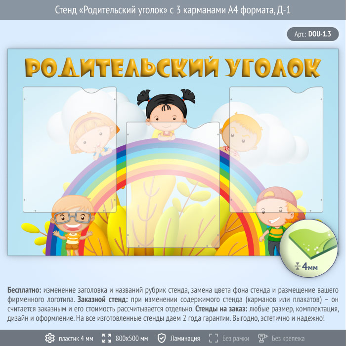 Стенд «Родительский уголок» с 3 карманами А4 формата (DOU-1.3) в Краснодаре купить
