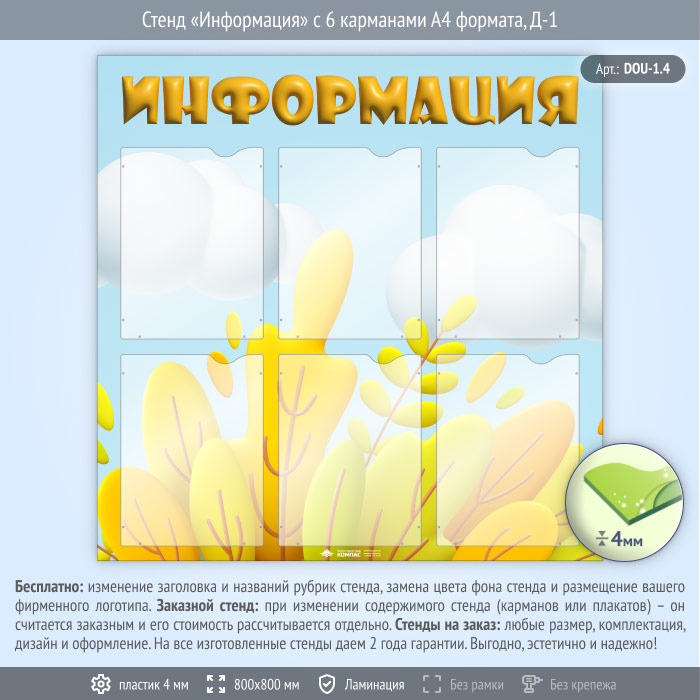 Стенд «Информация» с 6 карманами А4 формата (DOU-1.4) в Краснодаре купить