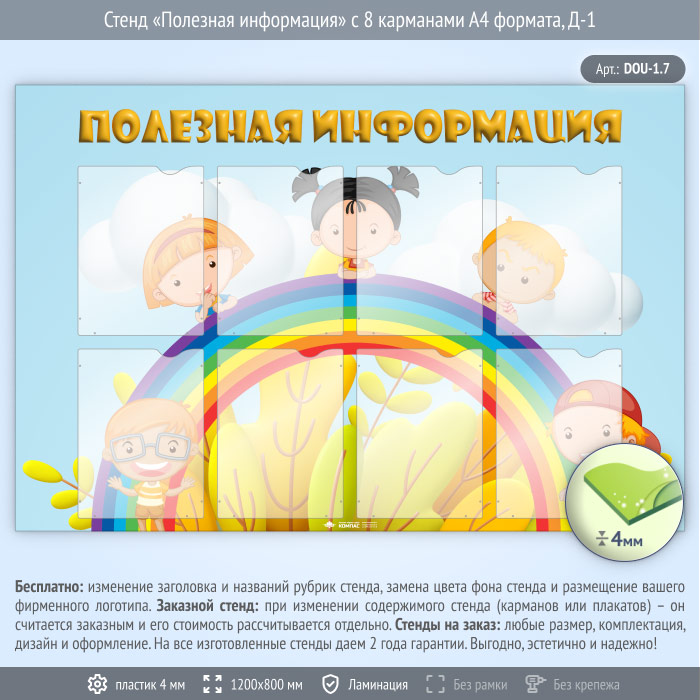 Стенд «Полезная информация» с 8 карманами А4 формата (DOU-1.7) в Краснодаре купить