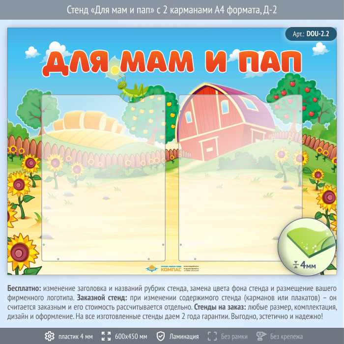 Стенд «Для мам и пап» с 2 карманами А4 формата (DOU-2.2) в Краснодаре купить