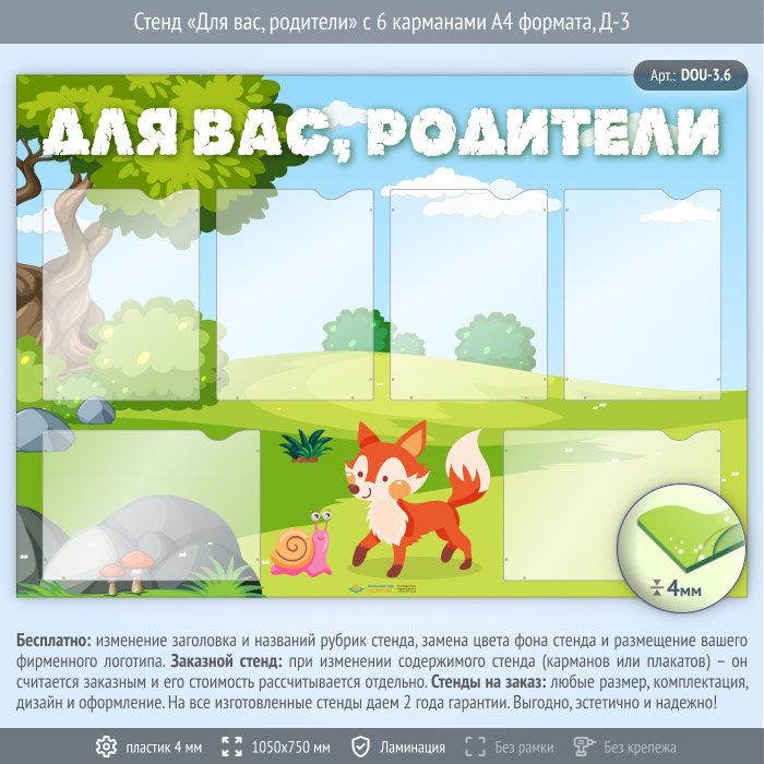 Стенд «Для вас, родители» с 6 карманами А4 формата (DOU-3.6) в Краснодаре купить