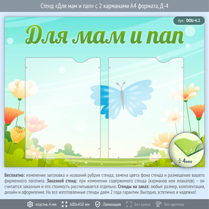 Стенд «Для мам и пап» с 2 карманами А4 формата (DOU-4.2) в Краснодаре купить