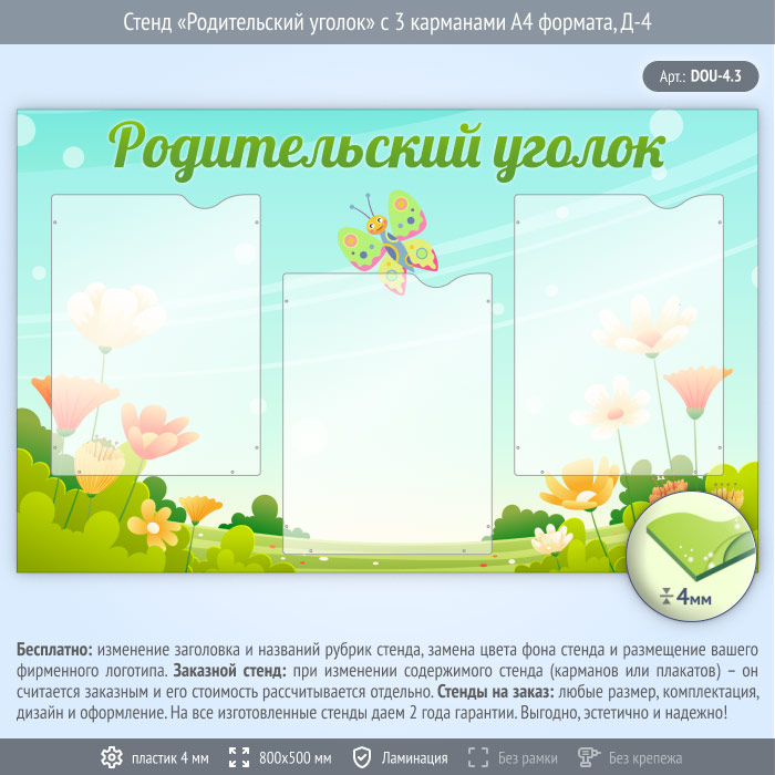 Стенд «Родительский уголок» с 3 карманами А4 формата (DOU-4.3) в Краснодаре купить