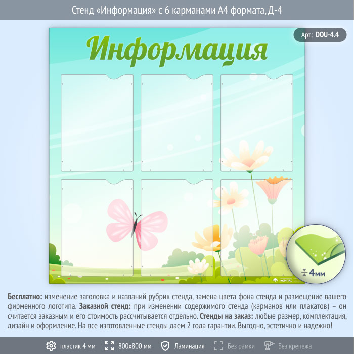 Стенд «Информация» с 6 карманами А4 формата (DOU-4.4) в Краснодаре купить