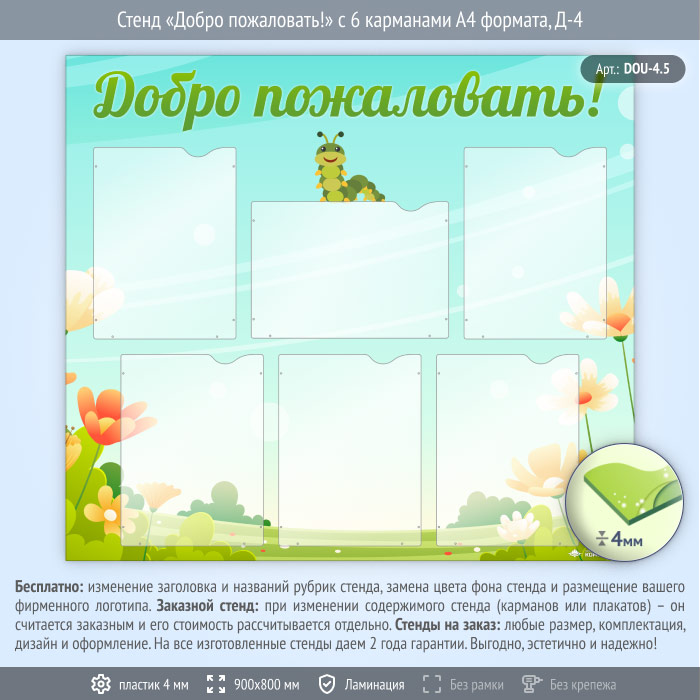 Стенд «Добро пожаловать!» с 6 карманами А4 формата (DOU-4.5) в Краснодаре купить