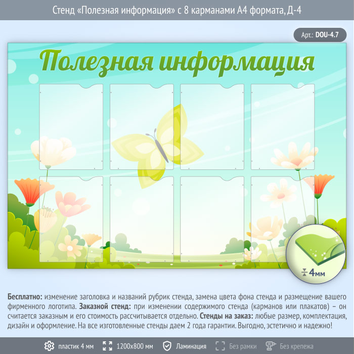 Стенд «Полезная информация» с 8 карманами А4 формата (DOU-4.7) в Краснодаре купить
