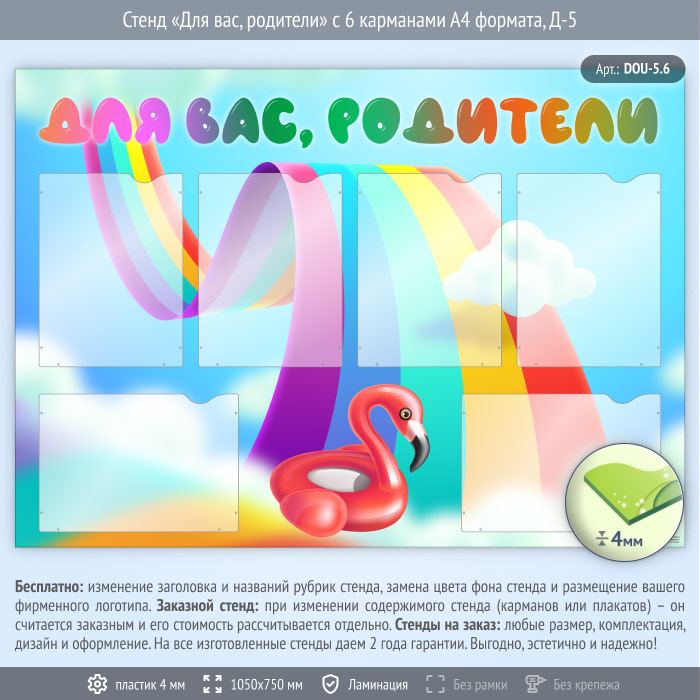 Стенд «Для вас, родители» с 6 карманами А4 формата (DOU-5.6) в Краснодаре купить