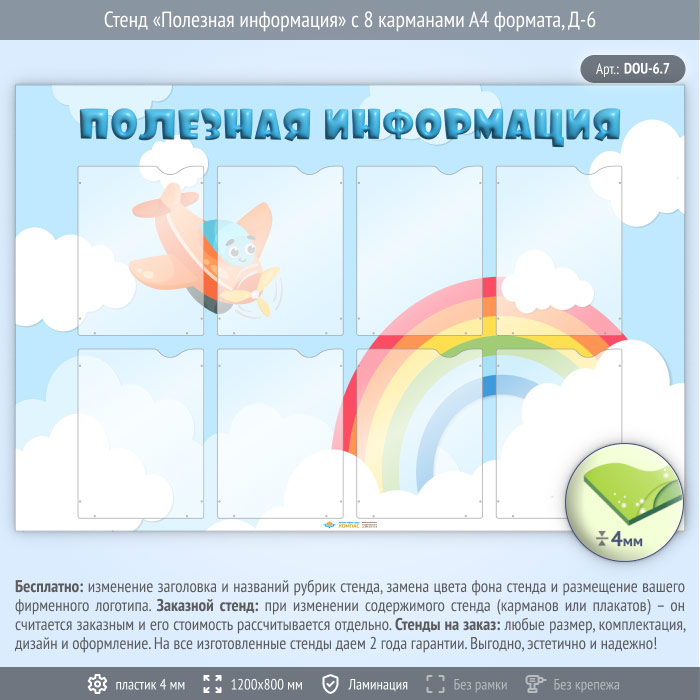 Стенд «Полезная информация» с 8 карманами А4 формата (DOU-6.7) в Краснодаре купить