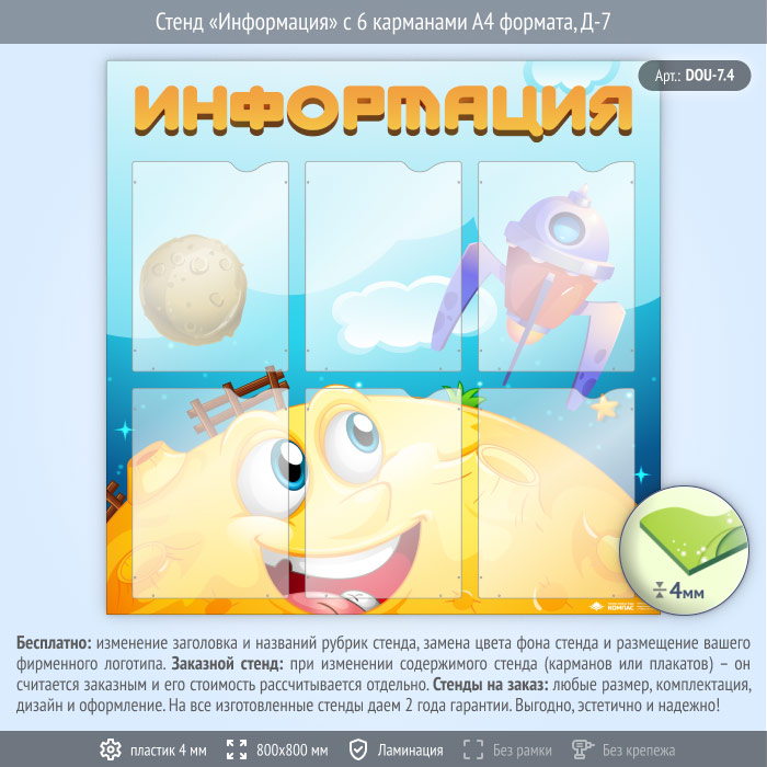Стенд «Информация» с 6 карманами А4 формата (DOU-7.4) в Краснодаре купить