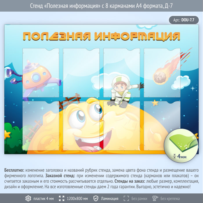 Стенд «Полезная информация» с 8 карманами А4 формата (DOU-7.7) в Краснодаре купить
