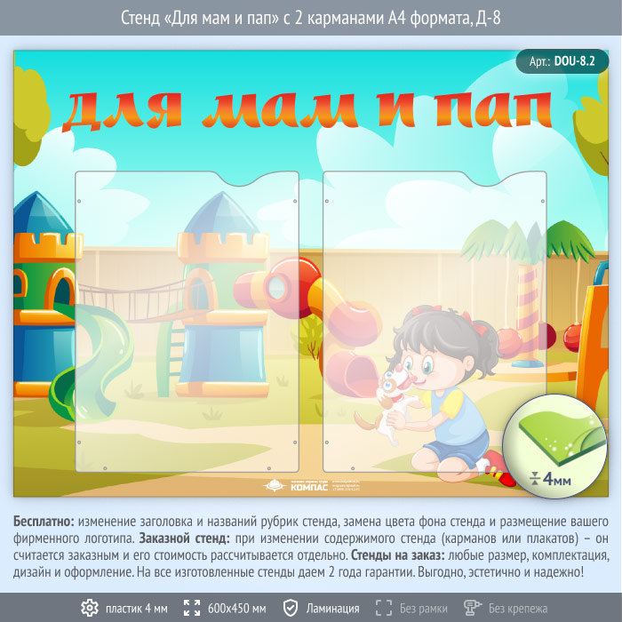 Стенд «Для мам и пап» с 2 карманами А4 формата (DOU-8.2) в Краснодаре купить