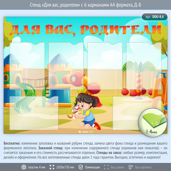 Стенд «Для вас, родители» с 6 карманами А4 формата (DOU-8.6) в Краснодаре купить