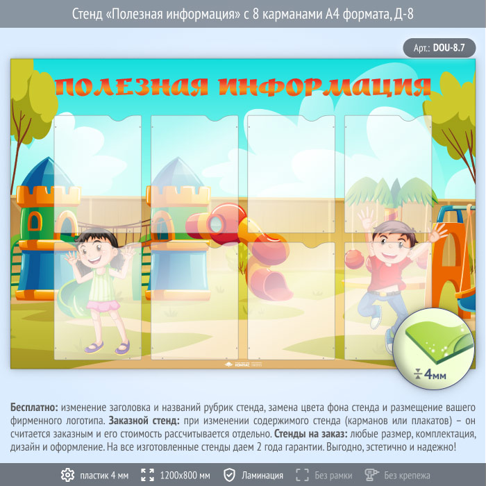 Стенд «Полезная информация» с 8 карманами А4 формата (DOU-8.7) в Краснодаре купить