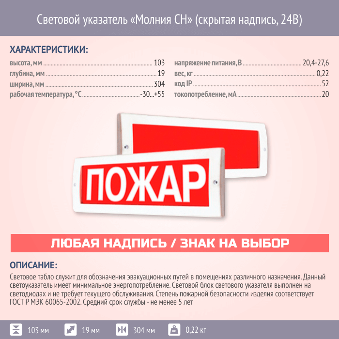 Световой указатель Молния СН (скрытая надпись, 24В) в Краснодаре купить