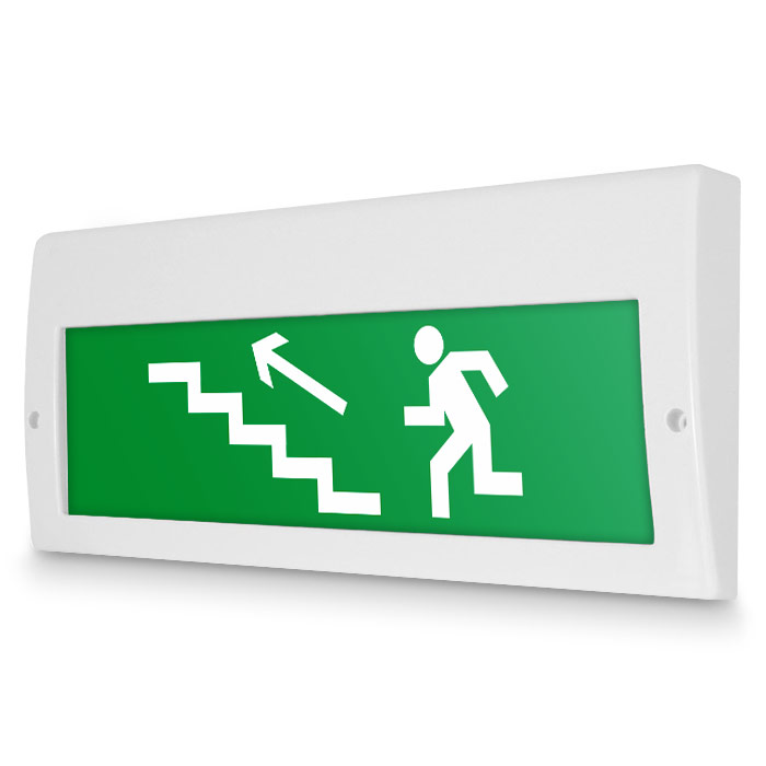 Световое табло «Направление к эвакуационному выходу по лестнице вверх (левосторонний)», Молния (220В РИП) в Краснодаре купить