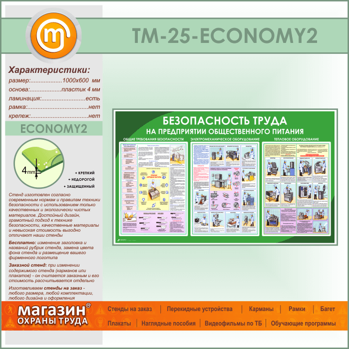 Стенд «Безопасность труда на предприятиях общественного питания» (TM-25-ECONOMY2) в Краснодаре купить