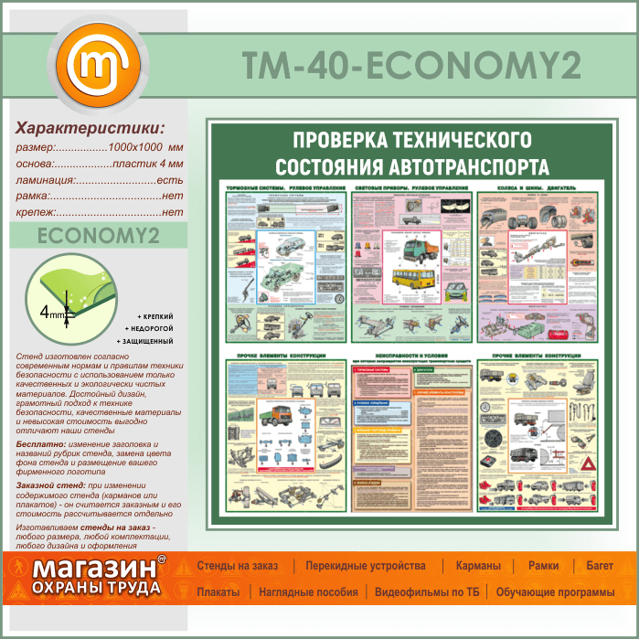 Стенд «Проверка технического состояния автотранспорта» (TM-40-ECONOMY2) в Краснодаре купить
