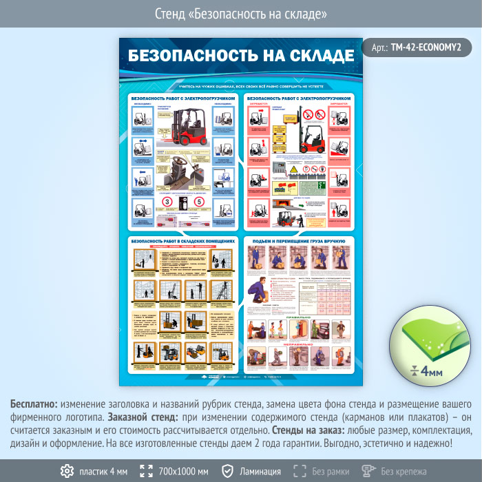 Стенд «Безопасность на складе» (TM-42-ECONOMY2) в Краснодаре купить