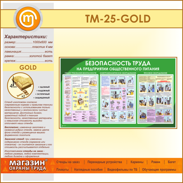 Стенд «Безопасность труда на предприятиях общественного питания» (TM-25-GOLD) в Краснодаре купить