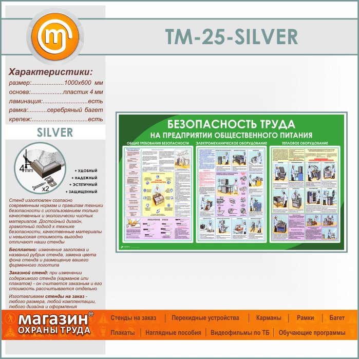 Стенд «Безопасность труда на предприятиях общественного питания» (TM-25-SILVER) в Краснодаре купить