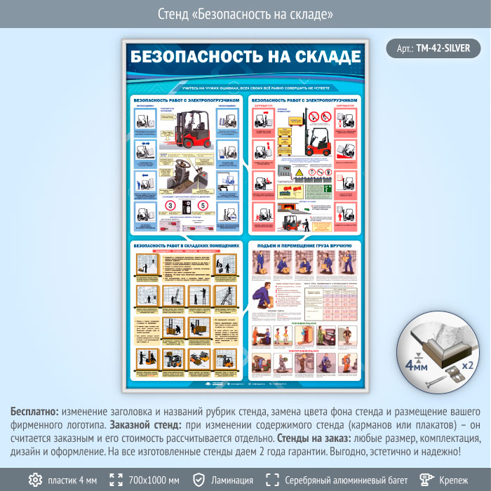 Стенд «Безопасность на складе» (TM-42-SILVER) в Краснодаре купить