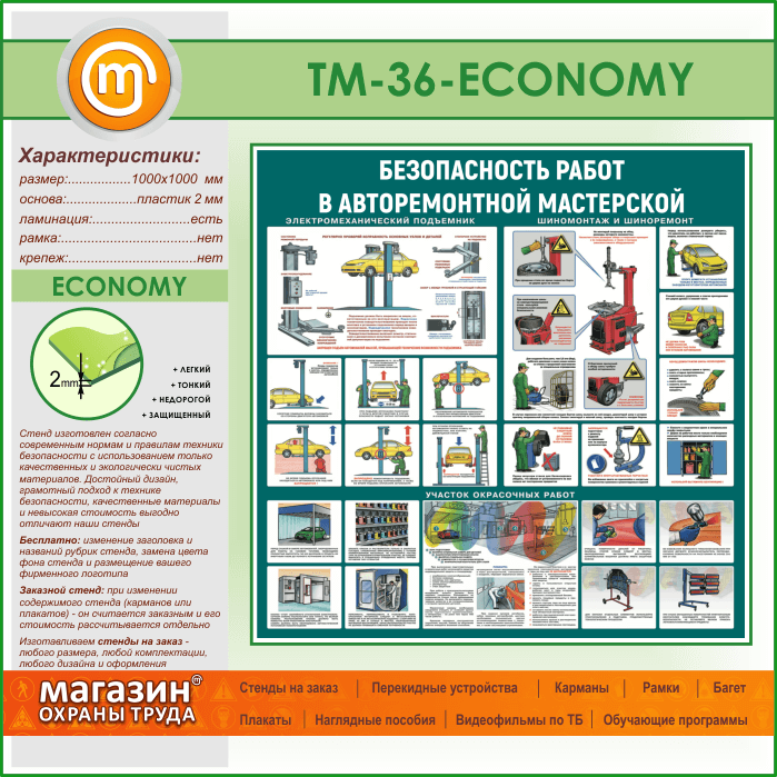 Стенд «Безопасность работ в авторемонтной мастерской» (TM-36-ECONOMY) в Краснодаре купить