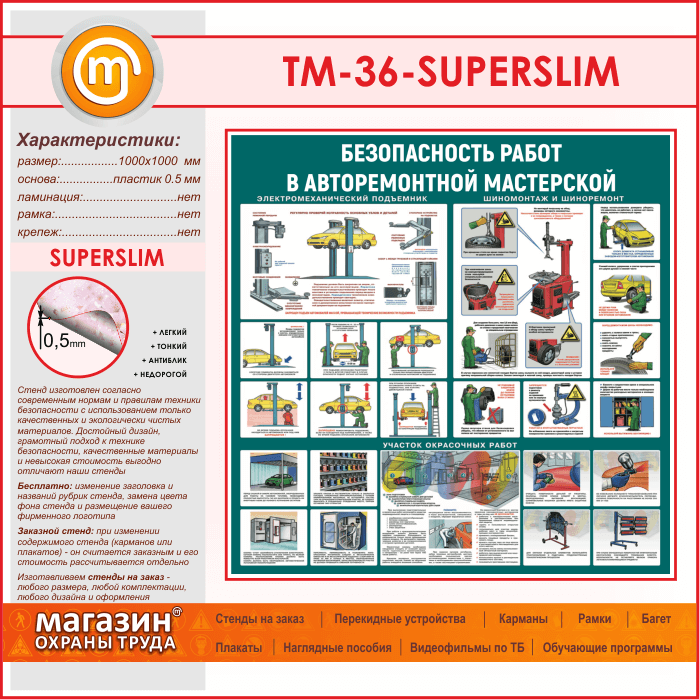 Стенд «Безопасность работ в авторемонтной мастерской» (TM-36-SUPERSLIM) в Краснодаре купить