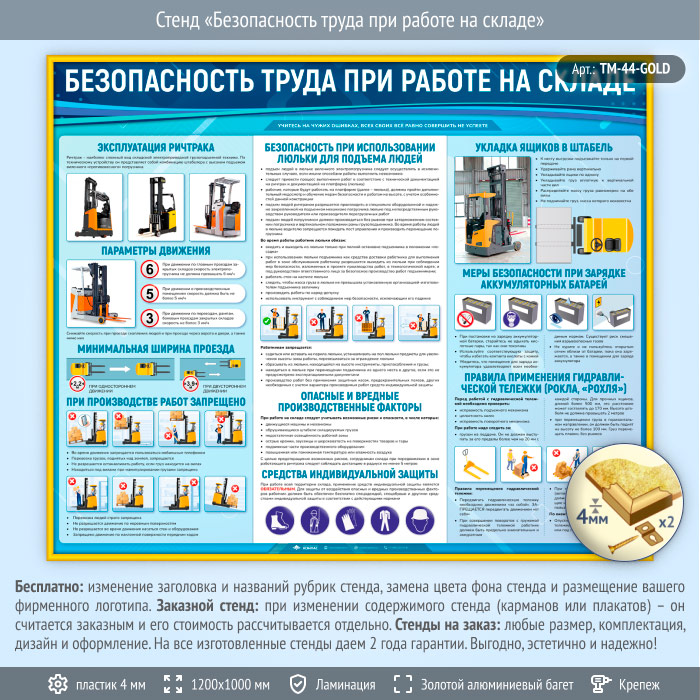 Стенд «Безопасность труда при работе на складе» (TM-44-GOLD) в Краснодаре купить