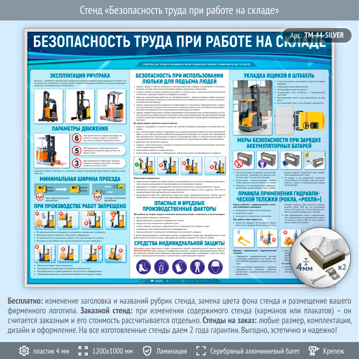 Стенд «Безопасность труда при работе на складе» (TM-44-SILVER) в Краснодаре купить